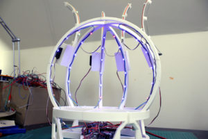 The brain itself is external to Ultron and connected over Bluetooth. It has various LEDs and servo-actuated things which will move and illuminate as Ultron thinks. The base contains some Arduinos and the other electronics. I want to make this interactive so there will also be some controls etc that you can tweak as it’s working.