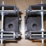 The parellel parts at the tops of the legs are spaced apart with locking nuts on a 10mm threaded rod:
