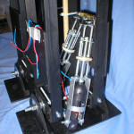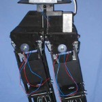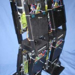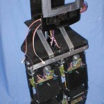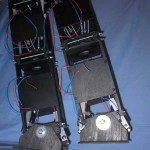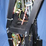 I have now added some of the control electronics to the android. This is covered in more detail in the article ‘Positioning joints with DC motors’. I have placed the assembled modules in each leg and cabled them all up: