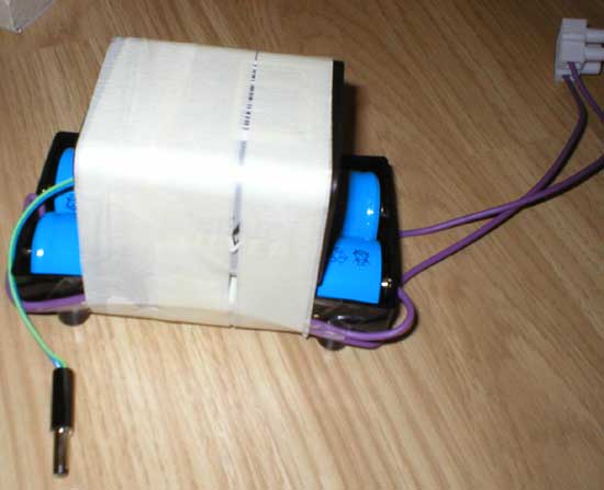 I’ve got hold of some batteries to power the android. It now runs from 4x NiCad D cells wired as two series pairs in parallel to give 2.4v at a total of 11Ah – as each battery is 5.5Ah at 1.2v. This seems to run the motors as just the right speed. I’ve also used a PP9 ‘latern batery’ which is 9v to power the electronics – regulated down to 5v for the Picaxes and left at 9v to power the relays which are 12v but seem to work ok. I taped the batteries together to make one ‘pack’:
