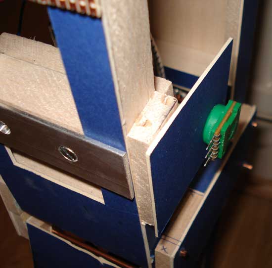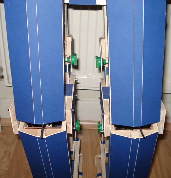 Each motor is mounted on a bit of card (same that I made the whole android out of). Even though it’s card it’s quite strong but still flexes if the motor doesn’t quite turn on center so nothing gets damaged: