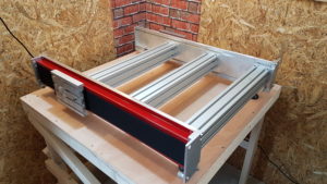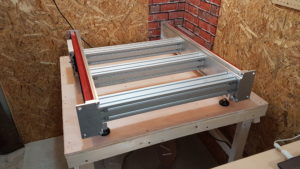 The whole thing is very sturdy which should be great for cutting wood and aluminium. It’s sitting on a 1×1 metre table.
