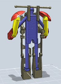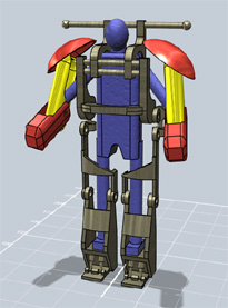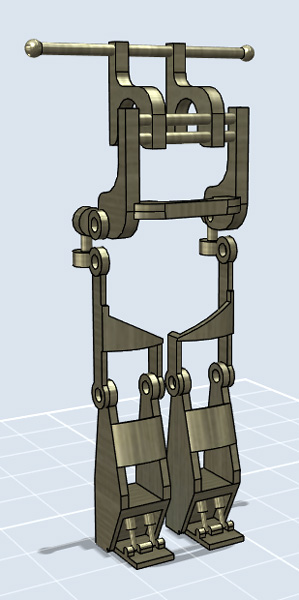-Note that the hip hinges need three degrees of freedom to allow full motion, the final assembly here will probably look somewhat different.