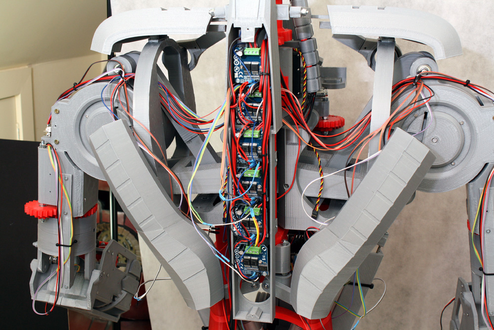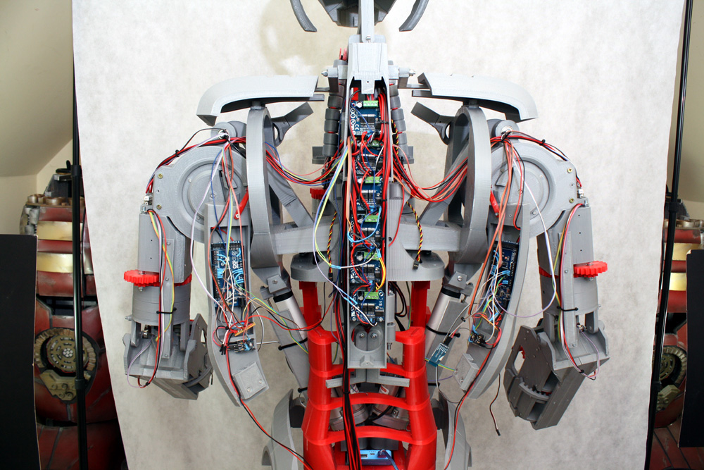 I’m using the BTS 7960 motor driver to control the majority of the main motors. Each side of Ultron is driven from an Arduino Mega 2650. The motor drivers fit into the spine of Ultron, and the Arduinos go into each shoulder blade