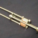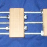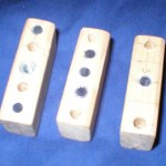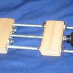 I made 5 holes in the bits of wood, inserted the hex nut into one of them and 6mm inside diameter aluminium tubing into the others. The outside holes are to hold ‘rails’ that the actuator will slide up and down on, the next two holes towards the middle are for the actuator ‘push rods’ and the middle hole is for the turning rod: