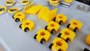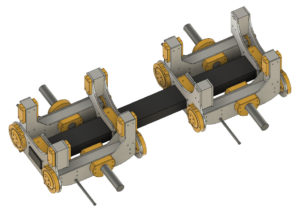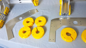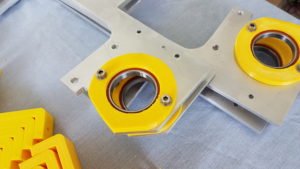 I’ve also used Ninjaflex feet for now (they will be replaced with something else later). I’ve cut spaces for the bearings into the aluminium and capped with with 3D printed parts: