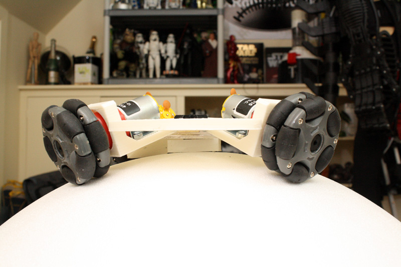 My concept for this droid is to build a ‘ball balancing robot’ which actively balances on a ball using Gyros and Accelerometers. The ball is light weight because it’s made from expanded polystyrene which means it doesn’t have much inertia. The robot will be heavier which will make it more stable because it will have a larger inertia. I’m using omni-directional wheels so that the robot can move in any direction to keep balance.