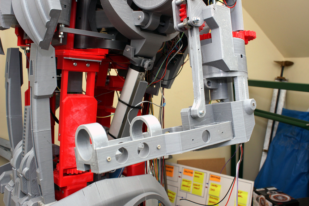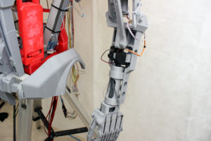 The old bicep was actually in the forearm, so I’ve installed a new rack-and-pinion system to pull the forearm up and down. The motor still needs to be installed. There will of course be cosmetic coverings once everything is in place.