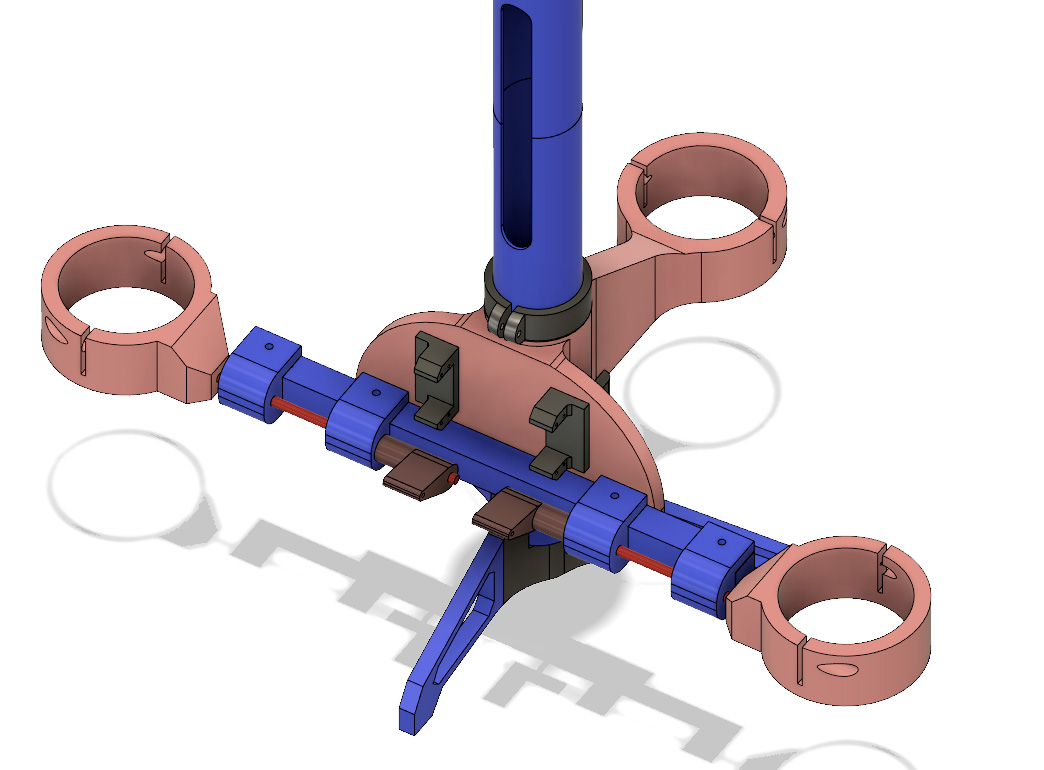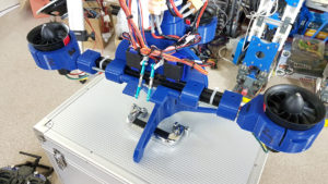 My approach was to use 3 EDFs – two for the main lift of the rocket, and another one for stability. The whole thing is controlled by an Arduino MEGA 2650 and an MPU6050 IMU which tries to keep it all upright.
